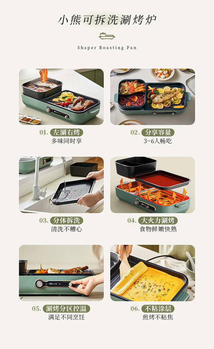 商品名称:小熊(Bear)烤涮一体两用锅 烤肉锅电烤盘 家用电烧烤炉