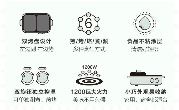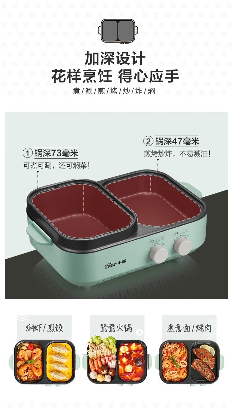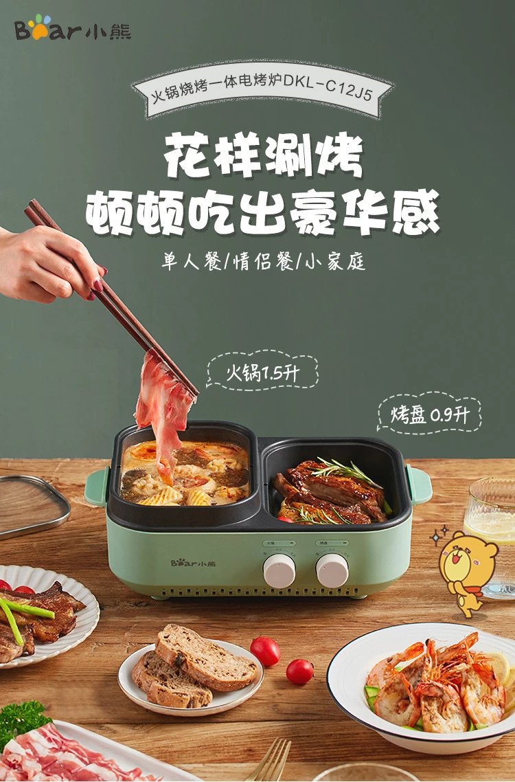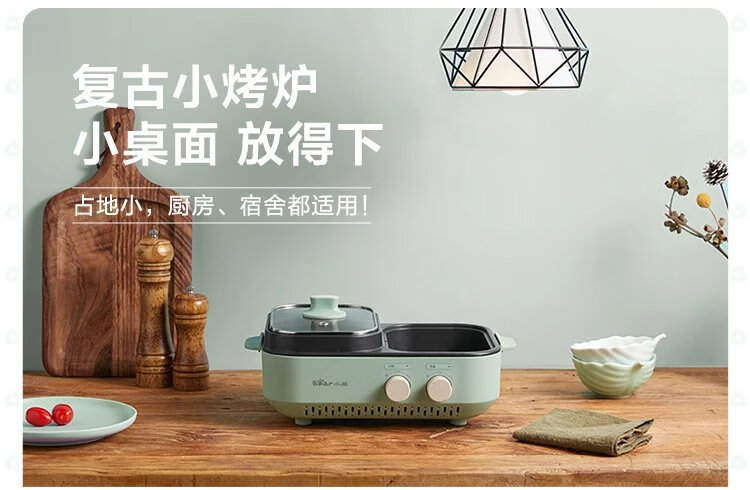 商品名称:小熊涮烤一体锅烤肉盘家用多功能电烤盘涮烤电烤炉 绿色 DKL-C12J5